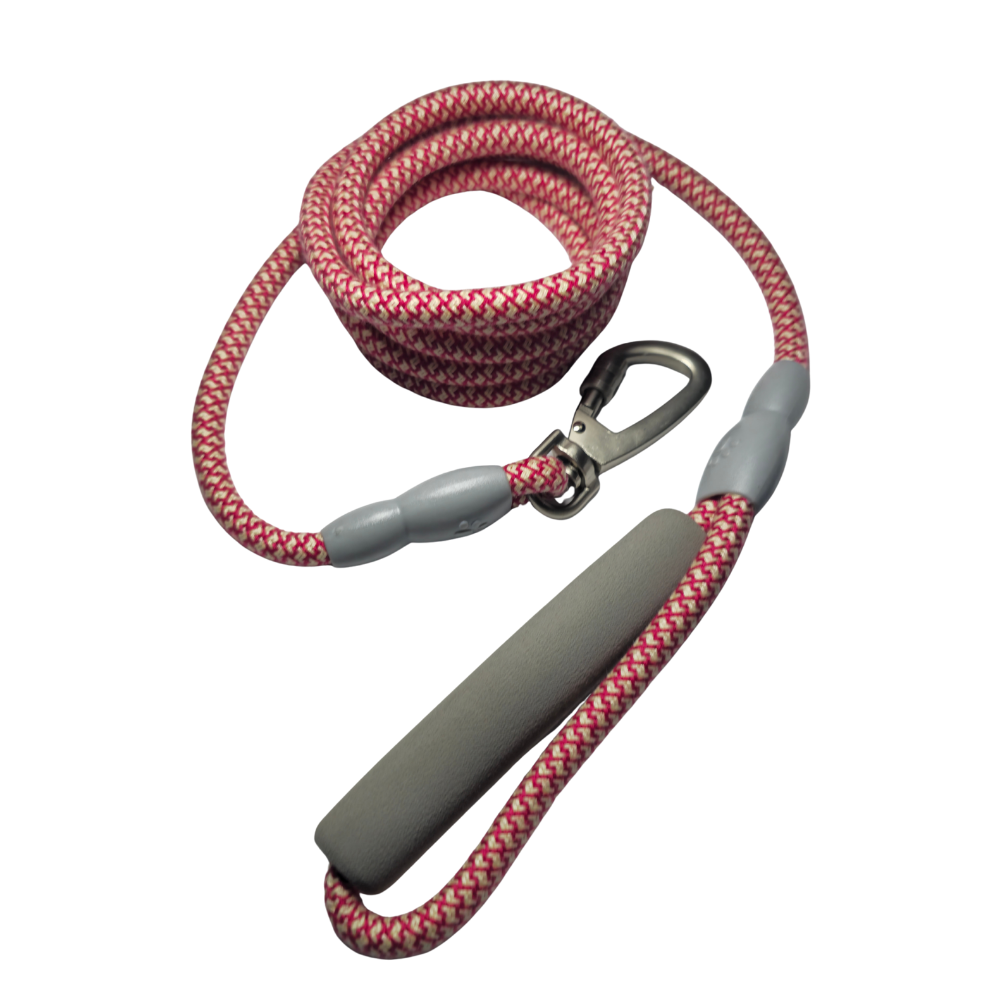 Fabricada con cuerda de nylon trenzado premium, soporta tirones sin deformarse ni perder tensión. Su mango acolchado con espuma de alta densidad evita la fricción y brinda un agarre cómodo incluso durante paseos extensos o con perros fuertes.