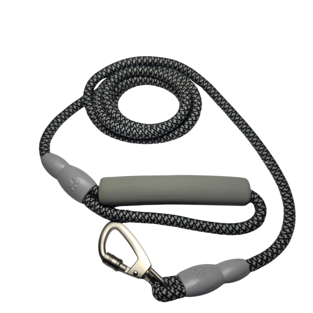 La Correa de Paseo Firme & Cómoda combina estética moderna con funcionalidad superior. Su cuerda tiene un acabado trenzado de dos tonos que resiste el desgaste y la humedad, mientras los refuerzos de silicona en las uniones evitan roturas o deshilachado.