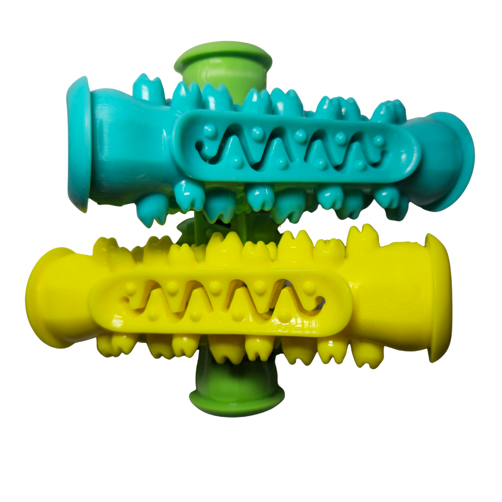 El juguete de alimentación y limpieza dental para perros de Puppy Planet combina diversión, salud y bienestar. Hecho en goma resistente con relieves y ranuras, limpia los dientes mientras libera snacks o pellets lentamente. Ideal para perros pequeños y medianos. Reduce ansiedad, estimula la mente y favorece la digestión natural.