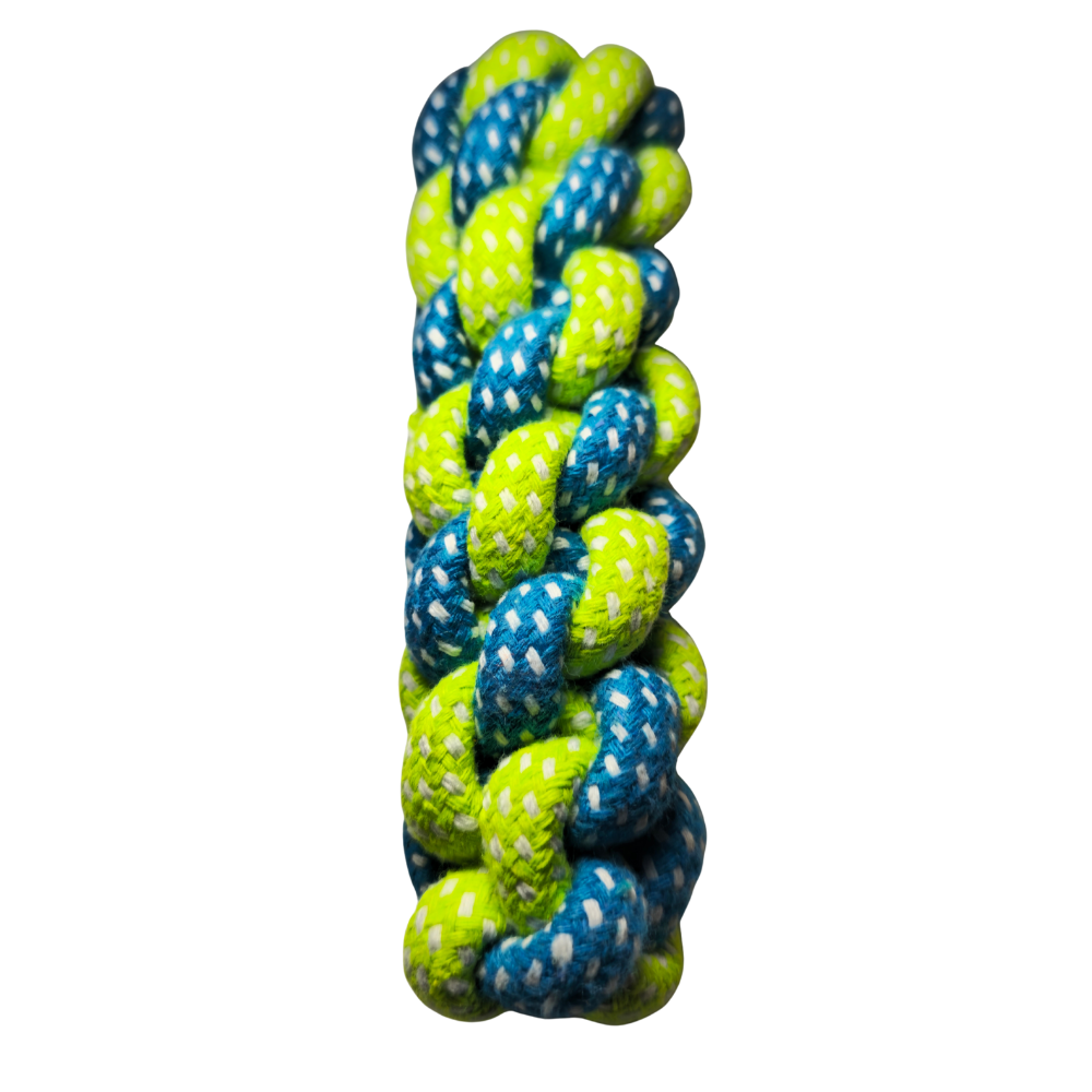 Al morder y tirar, el perro libera endorfinas que reducen la ansiedad, mientras su dentadura se mantiene más limpia y fuerte. Además, el material trenzado es lavable y se seca rápido, por lo que siempre estará listo para una nueva sesión de juego.