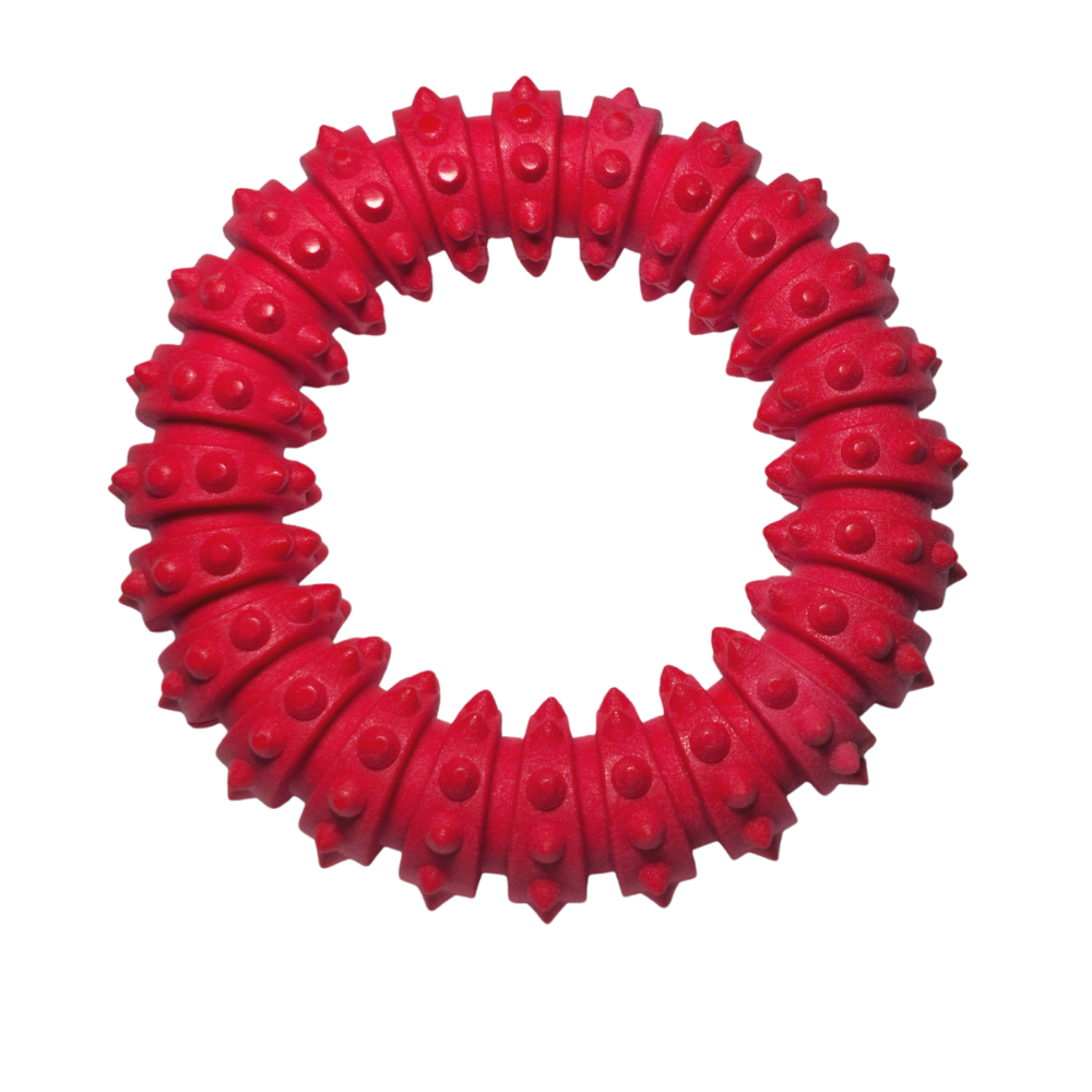 El Aro de Goma Dental está cubierto de relieves estratégicos que actúan como cerdas naturales, eliminando residuos de comida y masajeando las encías para mejorar la circulación.