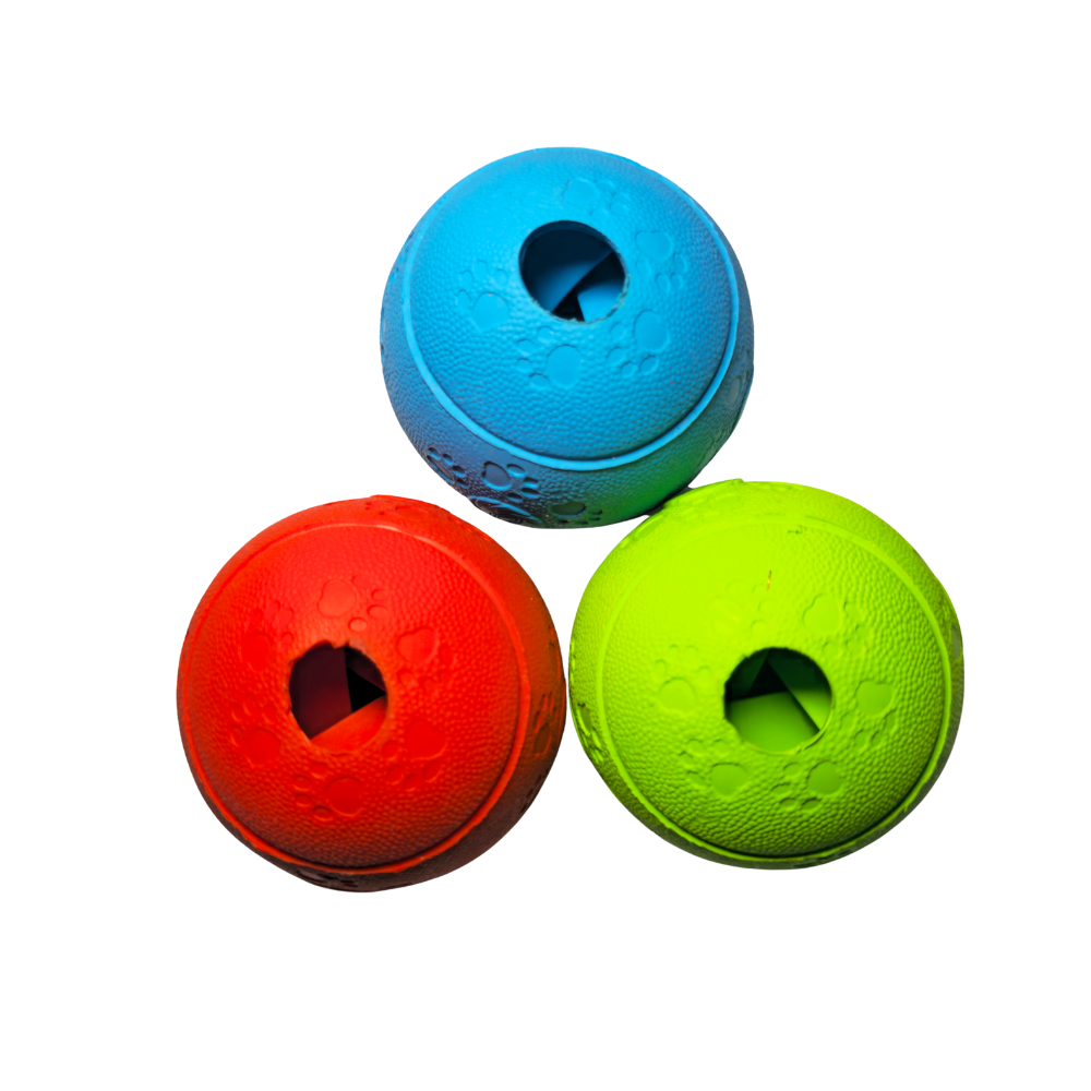 Fabricada en plástico ABS resistente y no tóxico, esta pelota cuenta con un sistema interno que permite ajustar la salida de los alimentos. Solo tienes que colocar dentro sus croquetas o snacks favoritos y dejar que tu perro la empuje con el hocico o las patas. Al hacerlo, las golosinas caerán poco a poco, recompensando su curiosidad y manteniéndolo entretenido por largo tiempo.