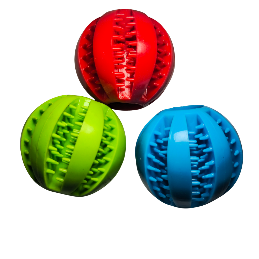 Cepillar los dientes de tu perro puede ser una batalla diaria. Esta pelota convierte esa tarea en algo que él disfruta: mientras juega, limpia sus dientes y masajea sus encías. Tú ganas tiempo y tranquilidad; él gana salud, energía y diversión.