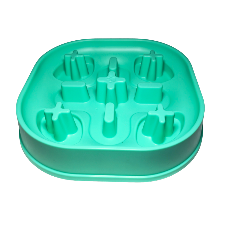 Sus bordes suaves protegen el hocico, mientras que sus divisiones internas obligan al perro a usar la lengua y el olfato de forma más activa, convirtiendo la alimentación en una experiencia entretenida.