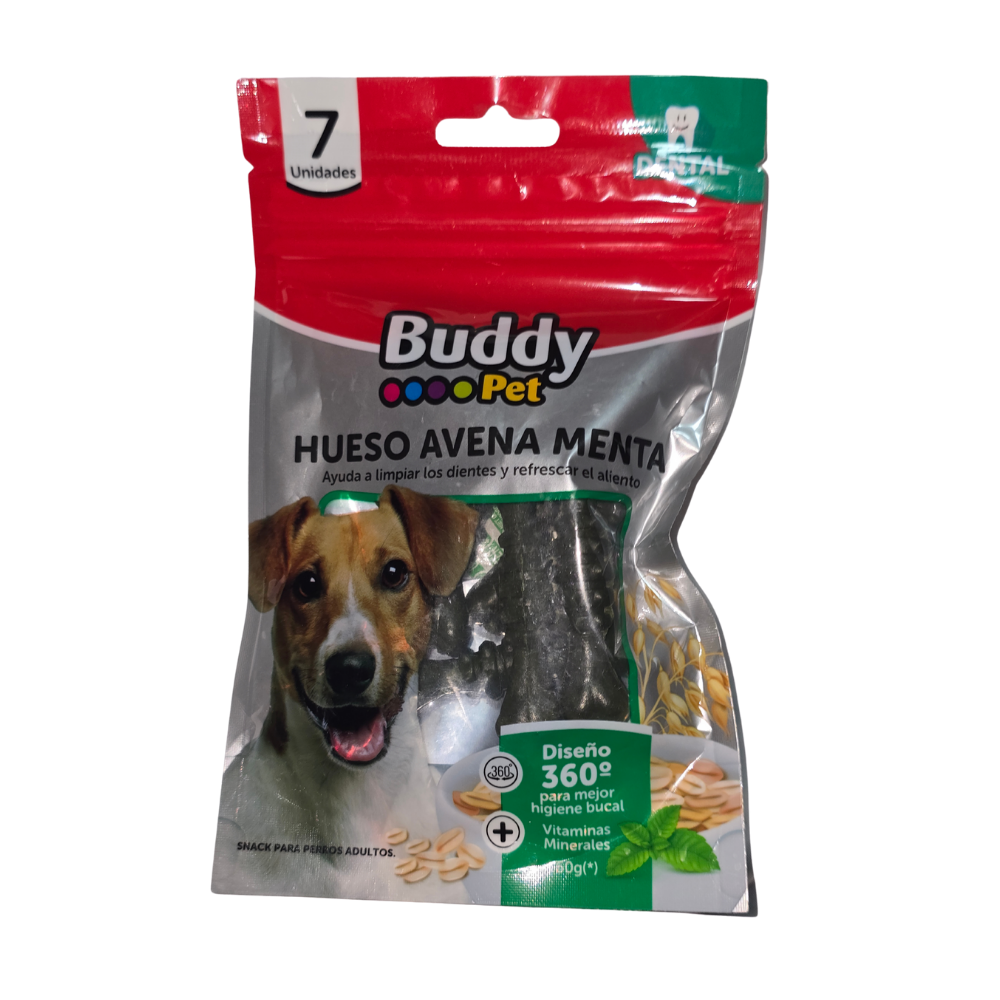 El Buddy Pet Hueso Dental con Avena y Menta es una forma práctica y sabrosa de cuidar la salud bucal de tu perro.